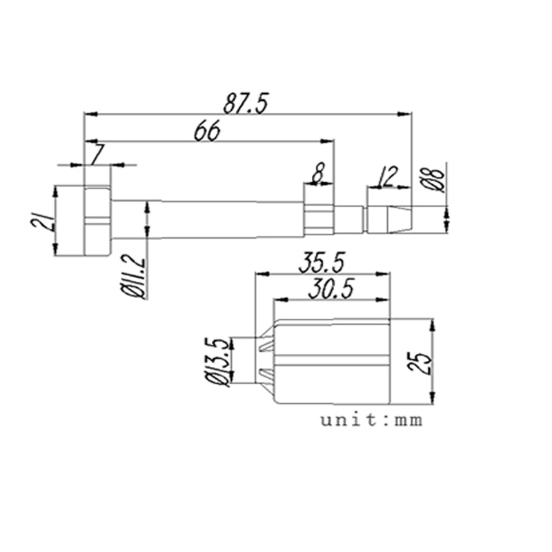 The bottom size of male and female is 25mm × 21mm.