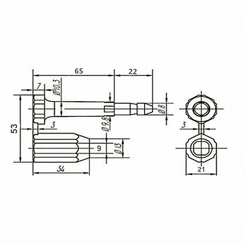 The bottom size of male and female is 21.6mm × 21.6mm.