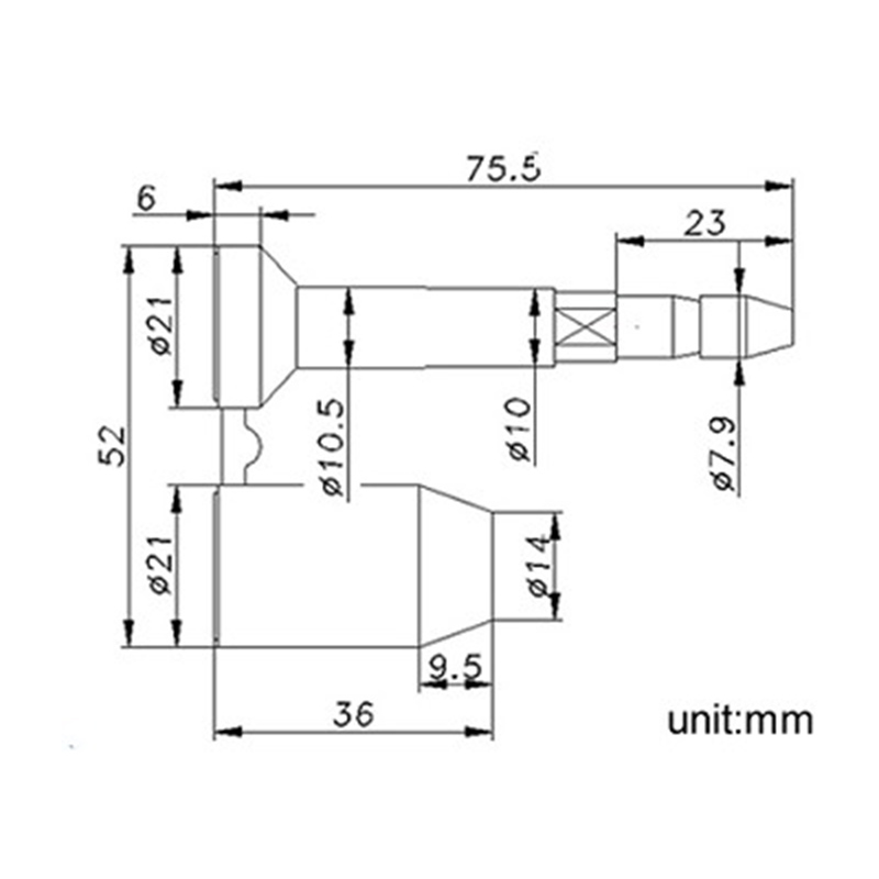 The bottom size of male and female is 21mm × 21mm.